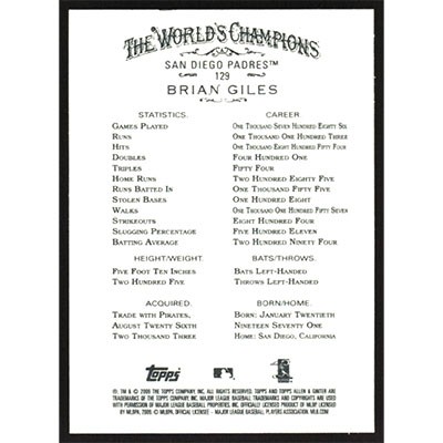 This is a 2009 Topps Allen & Ginter Code Brian Giles baseball card. The card is #129 and pictures show condition.