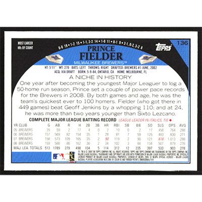 This is a 2009 Topps Chrome Prince Fielder baseball card. The card is #136 and pictures show condition.