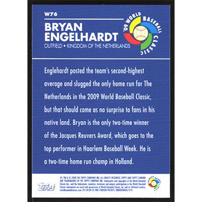 This is a 2009 Topps Chrome World Baseball Classic Bryan Engelhardt baseball card. The card is #W76 and pictures show condition. Team(s): Team Netherlands