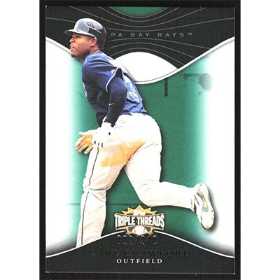 This is a 2009 Topps Triple Threads Emerald Carl Crawford baseball card. The card is #62 and pictures show condition. This card is limited; #'d 022/240.