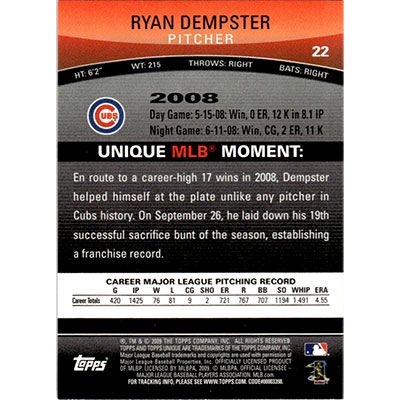 This is a 2009 Topps Unique Ryan Dempster baseball card. The card is #22 and pictures show condition.