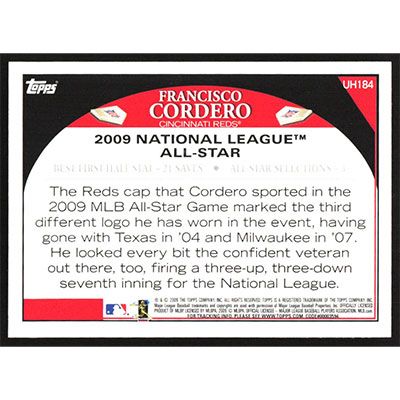 This is a 2009 Topps Update Francisco Cordero All-Star baseball card. The card is #UH184 and pictures show condition.