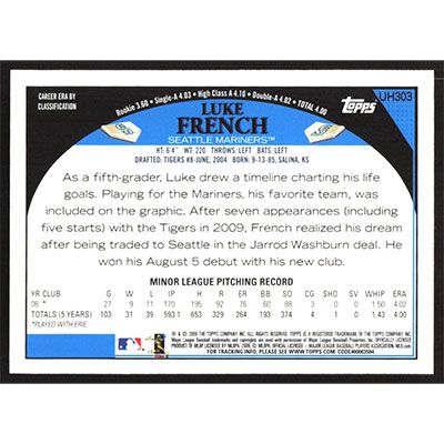 This is a 2009 Topps Update Luke French baseball card. The card is #UH303 and pictures show condition.