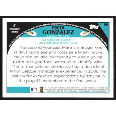 This is a 2009 Topps Wal-Mart Black Fredi Gonzalez baseball card. The card is #88 and pictures show condition.