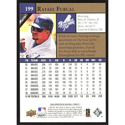 This is a 2009 Upper Deck Rafael Furcal baseball card. The card is #199 and pictures show condition.