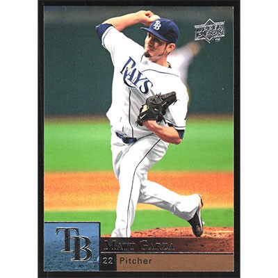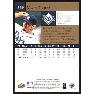 This is a 2009 Upper Deck Matt Garza baseball card. The card is #369 and pictures show condition.