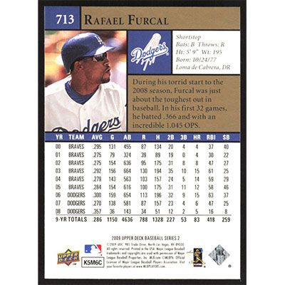 This is a 2009 Upper Deck Rafael Furcal baseball card. The card is #713 and pictures show condition.