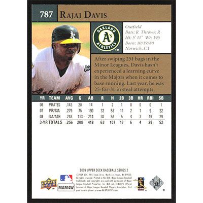 This is a 2009 Upper Deck Rajai Davis baseball card. The card is #787 and pictures show condition.