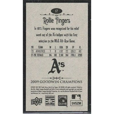 This is a 2009 Upper Deck Goodwin Champions Mini Rollie Fingers baseball card. The card is #17 and pictures show condition.