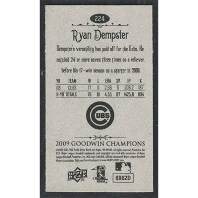 This is a 2009 Upper Deck Goodwin Champions Mini Ryan Dempster baseball card. The card is #224 and pictures show condition.