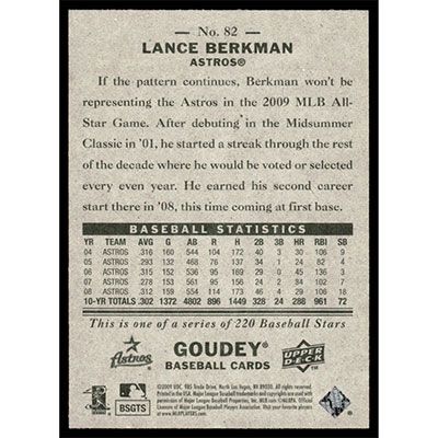 This is a 2009 Upper Deck Goudey Lance Berkman baseball card. The card is #82 and pictures show condition.