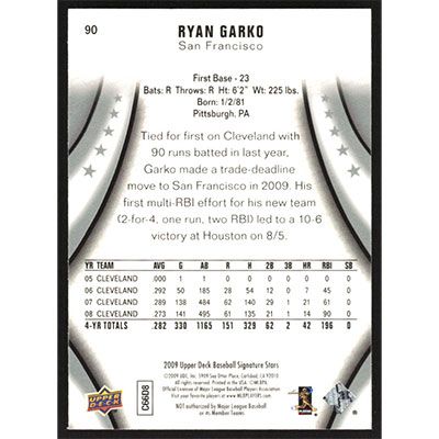 This is a 2009 Upper Deck Signature Stars Ryan Garko baseball card. The card is #90 and pictures show condition.