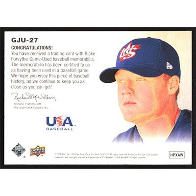 This is a 2009 Upper Deck Signature Stars USA Star Prospects Jerseys Blake Forsythe Jersey baseball card. The card is #GJU-27 and pictures show condition.