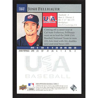 This is a 2009 Upper Deck USA National Team Josh Fellhauer baseball card. The card is #USAB-JF and pictures show condition.