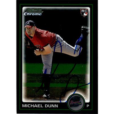 This is a 2010 Bowman Chrome Draft Michael Dunn autographed baseball card. This card has been signed, in blue, by Michael Dunn, and is guaranteed authentic by Ballcardz.com. The card is #BDP106 and pictures show condition.