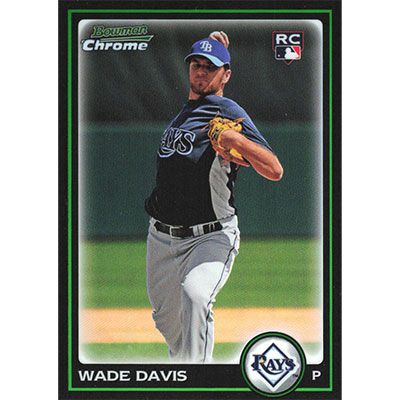 This is a 2010 Bowman Chrome Refractors Wade Davis baseball card. The card is #201 and pictures show condition. Team(s): Tampa Bay Rays Rookie Card (RC)