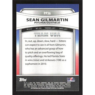 This is a 2010 Bowman Platinum Prospects Sean Gilmartin baseball card. The card is #PP36 and pictures show condition.