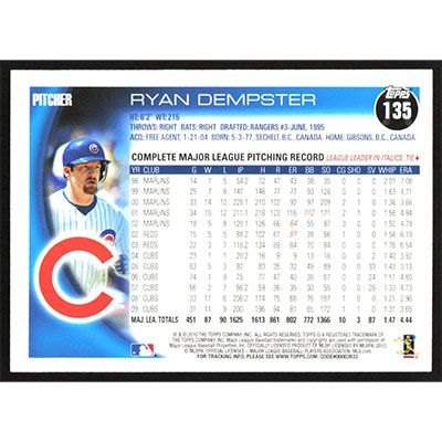 This is a 2010 Topps Ryan Dempster baseball card. The card is #135 and pictures show condition.