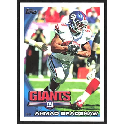 This is a 2010 Topps Ahmad Bradshaw football card. The card is #163 and pictures show condition.