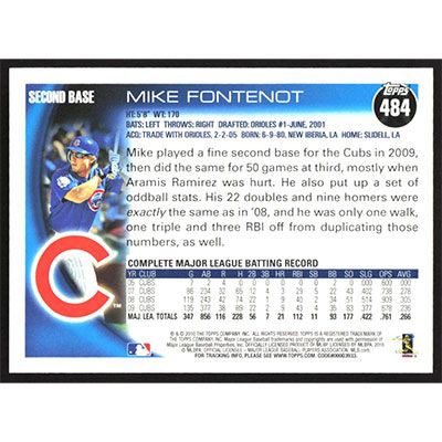 This is a 2010 Topps Mike Fontenot baseball card. The card is #484 and pictures show condition.