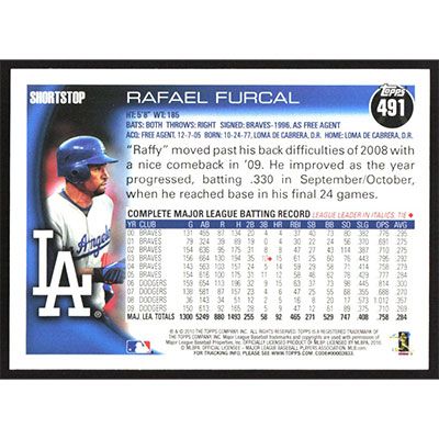 This is a 2010 Topps Rafael Furcal baseball card. The card is #491 and pictures show condition.