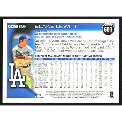 This is a 2010 Topps Blake DeWitt baseball card. The card is #601 and pictures show condition.