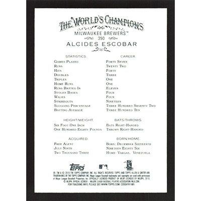 This is a 2010 Topps Allen & Ginter Alcides Escobar short print baseball card. The card is #350 and pictures show condition.