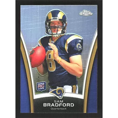 This is a 2010 Topps Chrome Retail Exclusive Rookie Refractors Sam Bradford football card. The card is #TMB-1 and pictures show condition. Team: St. Louis Rams Rookie Card