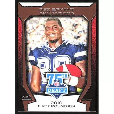 This is a 2010 Topps Draft 75th Anniversary Dez Bryant football card. The card is #75DA-39 and pictures show condition.