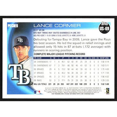 This is a 2010 Topps Update Lance Cormier baseball card. The card is #US-69 and pictures show condition.