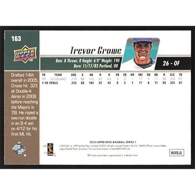 This is a 2010 Upper Deck Trevor Crowe baseball card. The card is #163 and pictures show condition.