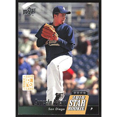 This is a 2010 Upper Deck Ernesto Frieri baseball card. The card is #18 and pictures show condition.