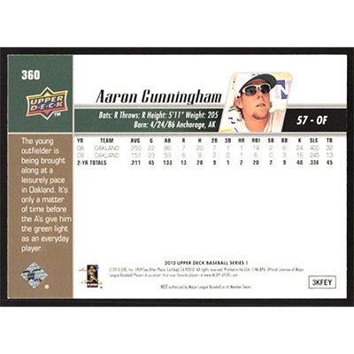 This is a 2010 Upper Deck Aaron Cunningham baseball card. The card is #360 and pictures show condition.