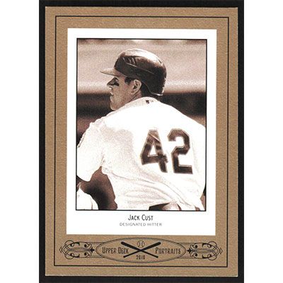 This is a 2010 Upper Deck Portraits Jack Cust baseball card. The card is #SE-62 and pictures show condition.