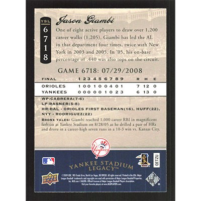 This is a 2010 Upper Deck Yankee Stadium Legacy Collection Jason Giambi baseball card. The card is #6718 and pictures show condition. Team(s): New York Yankees