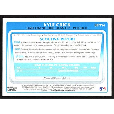 This is a 2011 Bowman Draft Prospects Kyle Crick baseball card. The card is #BDPP24 and pictures show condition.