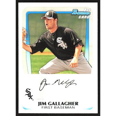 This is a 2011 Bowman Prospects Jim Gallagher baseball card. The card is #BP74 and pictures show condition.