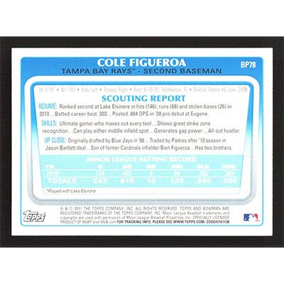 This is a 2011 Bowman Prospects Cole Figueroa baseball card. The card is #BP78 and pictures show condition.