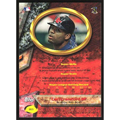 This is a 2011 Bowman's Best Carl Crawford baseball card. The card is #BB25 and pictures show condition.