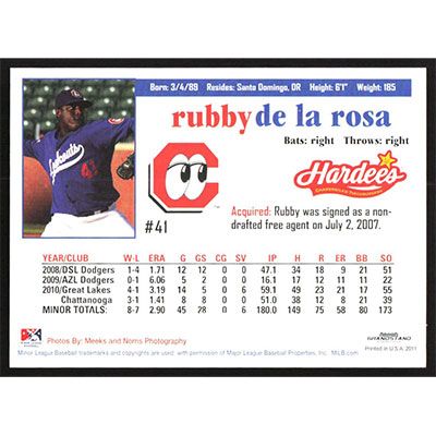 This is a 2011 Grandstand Rubby De La Rosa baseball card. The card is #7 and pictures show condition.