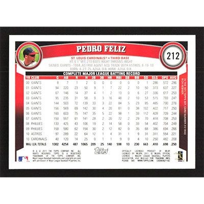 This is a 2011 Topps Pedro Feliz baseball card. The card is #212 and pictures show condition.