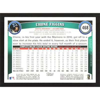 This is a 2011 Topps Chone Figgins baseball card. The card is #468 and pictures show condition.