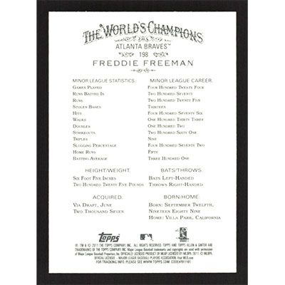 This is a 2011 Topps Allen & Ginter Freddie Freeman baseball card. The card is #198 and pictures show condition. Team(s): Atlanta Braves Rookie Card (RC)