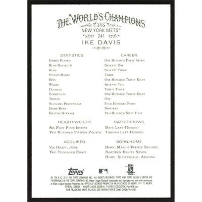This is a 2011 Topps Allen & Ginter Ike Davis baseball card. The card is #241 and pictures show condition.
