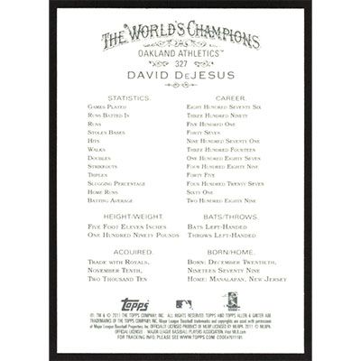 This is a 2011 Topps Allen & Ginter David DeJesus short print baseball card. The card is #327 and pictures show condition.