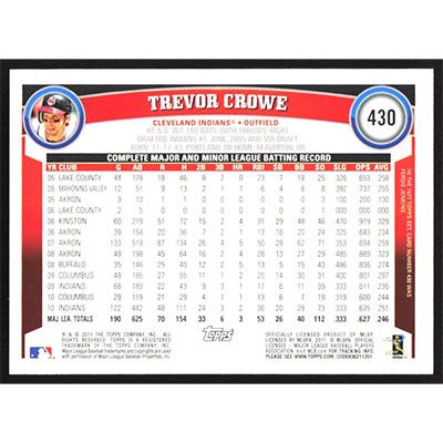This is a 2011 Topps Cognac Diamond Anniversary Trevor Crowe baseball card. The card is #430 and pictures show condition.