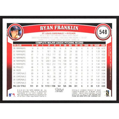 This is a 2011 Topps Cognac Diamond Anniversary Ryan Franklin baseball card. The card is #548 and pictures show condition.