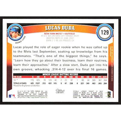 This is a 2011 Topps Diamond Anniversary Lucas Duda baseball card. The card is #129 and pictures show condition. Team(s): New York Mets Rookie Card (RC)