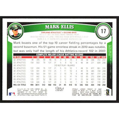 This is a 2011 Topps Diamond Anniversary Mark Ellis baseball card. The card is #17 and pictures show condition.