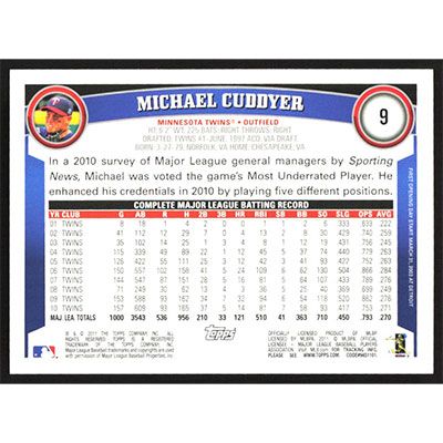This is a 2011 Topps Opening Day Michael Cuddyer baseball card. The card is #9 and pictures show condition.